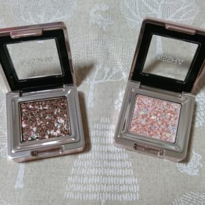 ミシャ グリッタープリズムアイシャドウ GBR01とGOP01