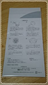説明書。この中にフェイスマスクが同封されてたと思います。